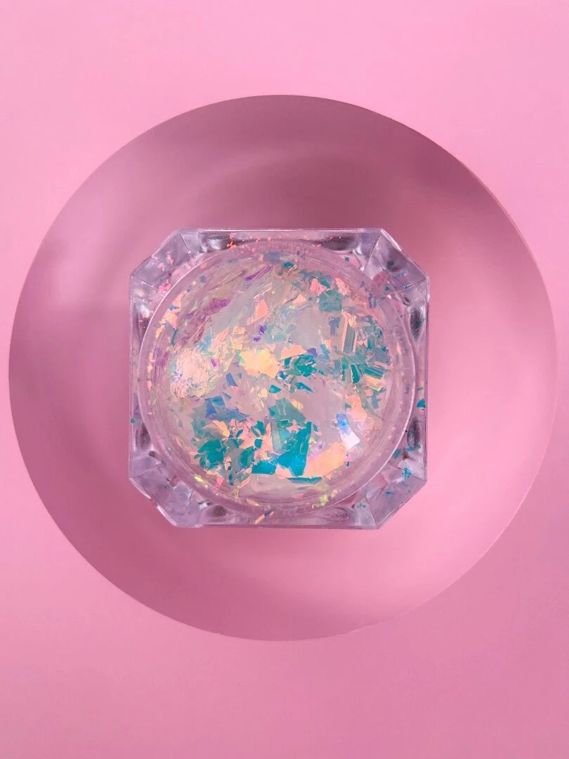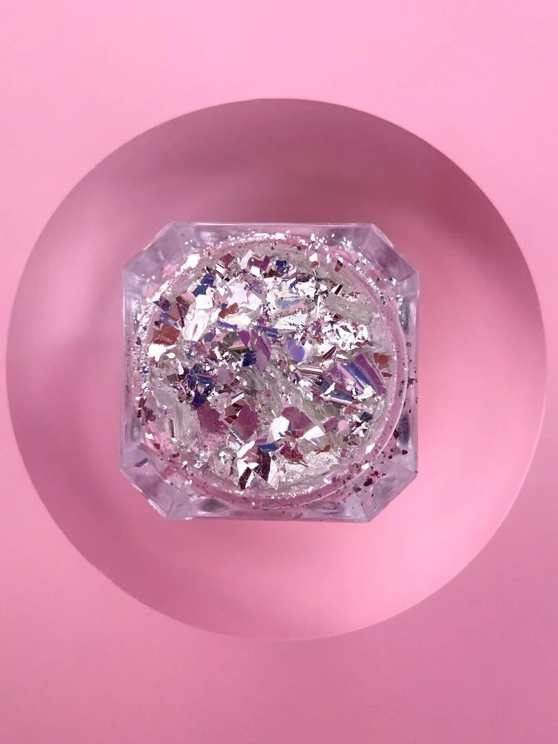 LUNAMooN Broken Glass Dry Glitter Set es una colección de 6 tipos de glitter seco en forma de copos ultrafinos, diseñados para añadir brillo, textura y modernidad a cualquier diseño de uñas.