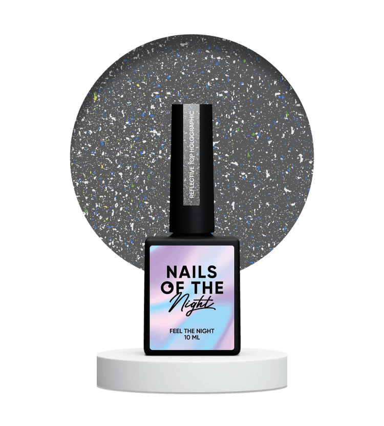 Gracias a la fórmula moderna, NAILSOFTHENIGHT Reflective top holographic está perfectamente alineado y cubre firmemente la placa de la uña. Previene astillas y rayones. Conserva el rico color de los materiales y el brillo estable por hasta cuatro semanas. No se vuelve amarillo. Consistencia media.