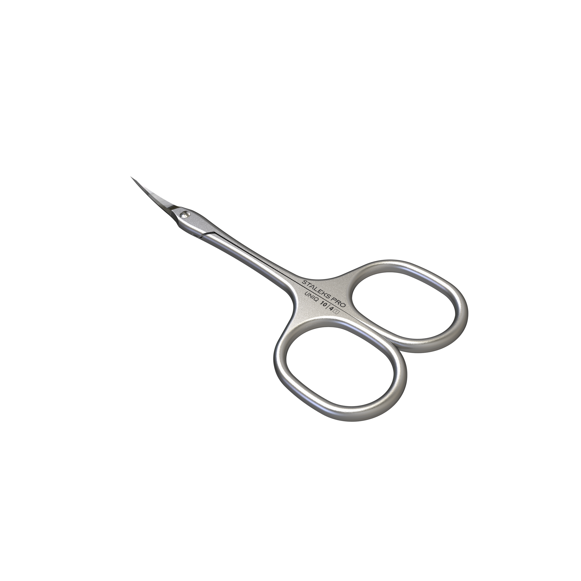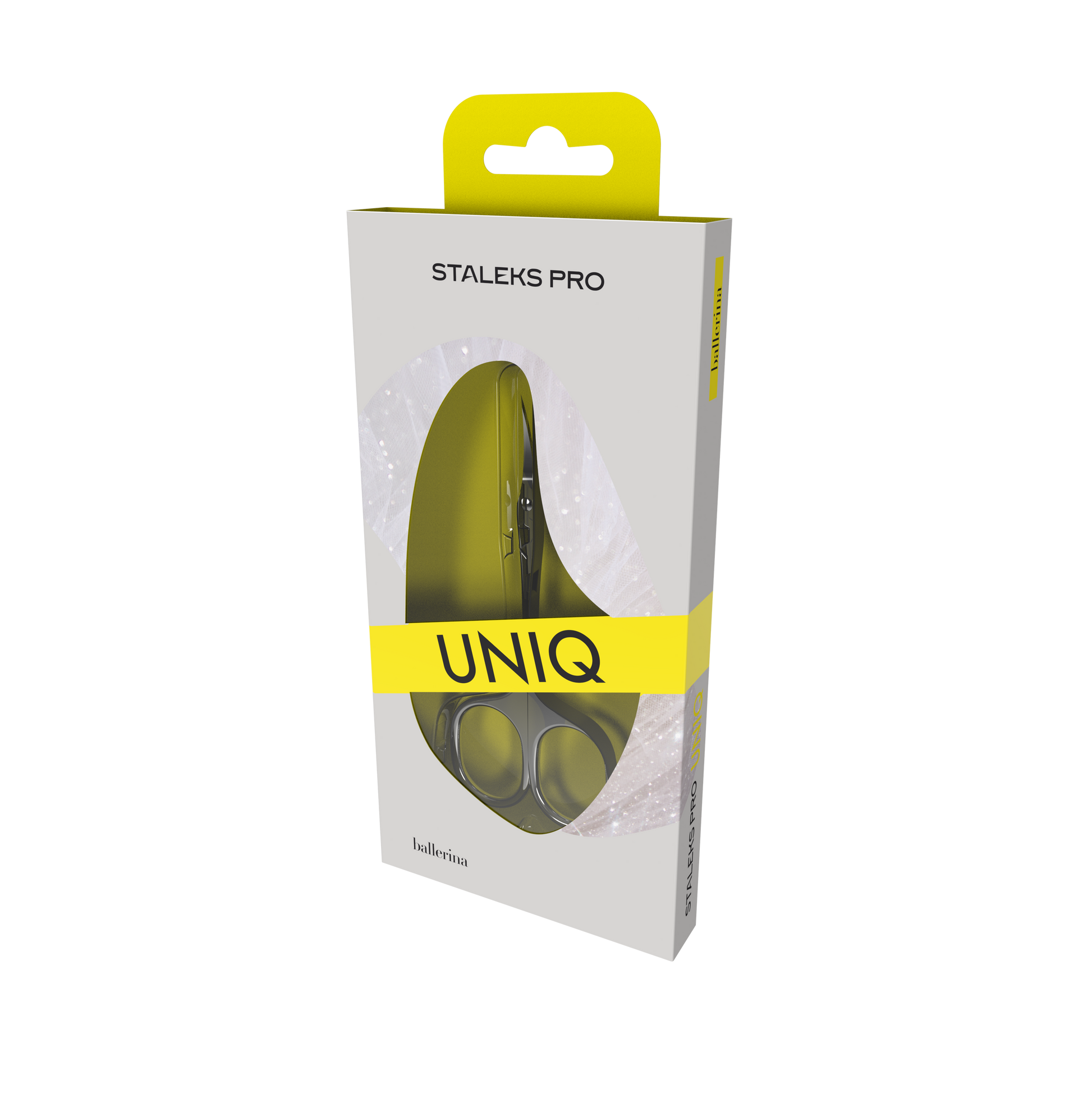 Las tijeras UNIQ 10/4 tienen hojas cónicas para facilitar el acceso a la zona de los senos paranasales. Gracias a sus inusuales mangos curvados, las tijeras se apoyan cómodamente en la palma de la mano durante el procedimiento de manicura. La ergonomía de la herramienta es un factor importante para prevenir el síndrome del túnel en las manicuristas.