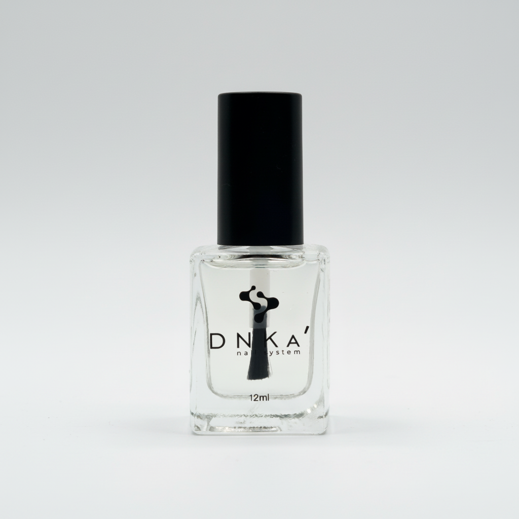 Aplicar una capa fina con un pincel semiseco sobre uñas desengrasadas.