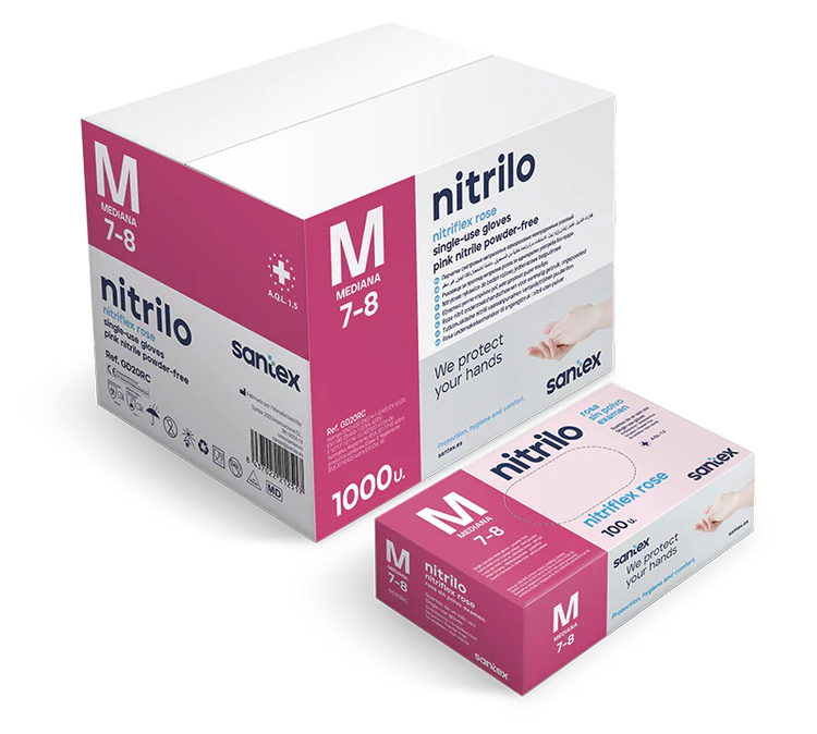 Guantes de nitrilo sin polvo, paquete de 100 unidades.