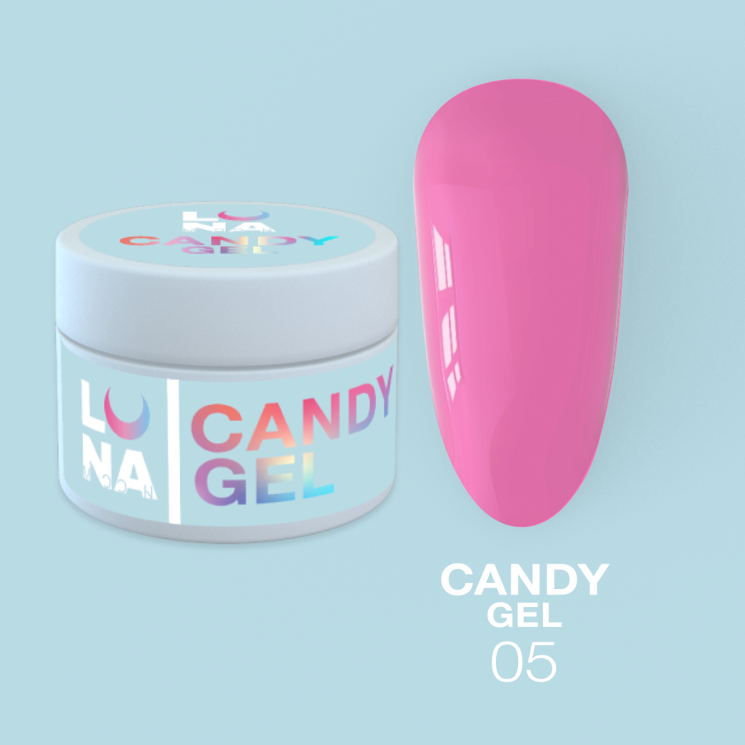 Gel de color para extensión LUNAmoon Candy: un material polimérico fotocurable que, gracias a su resistencia, permite extender significativamente la placa ungueal. El gel contiene fotoiniciadores que inician el proceso de polimerización cuando el material se expone a luz ultravioleta de una longitud de onda específica.