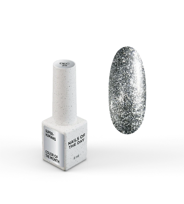NAILSOFTHEDAY Color of the Month Diciembre 2025 SUPERHUMANS - tono acero con pan de plata, cobertura completa en una sola capa, 6ml