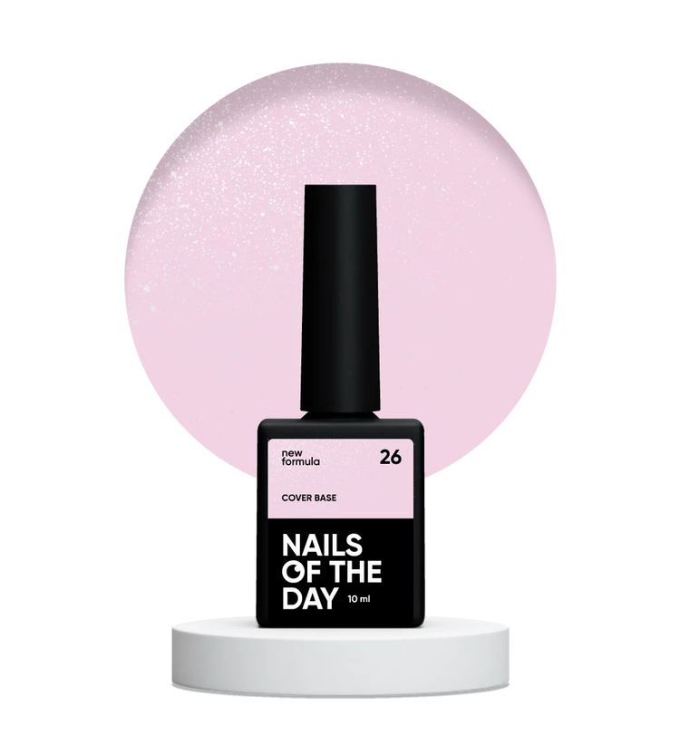 NAILSOFTHEDAY Cover base New Formula 26 - suave tono rosa con shimmer plateado, de brillo más frío, una base camuflaje para uñas, 10ml.