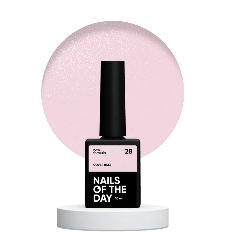 NAILSOFTHEDAY Cover base New Formula 28 - semitransparente tono rosa empolvado con shimmer plateado, una base camuflaje para uñas, 10ml.