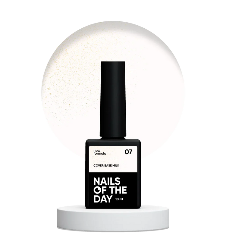 NAILSOFTHEDAY Cover base New Formula milk 07 - un tono lechoso, semitransparente con brillo dorado que aporta un reflejo cálido dorado, una base de camuflaje para uñas, 10ml.
